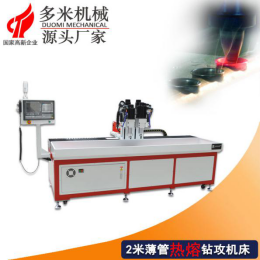 多米熱熔鉆攻機采用自主研發(fā)CNC數(shù)控系統(tǒng),無需編程可直接導“CAD”圖檔生成程序。雙主軸分別裝夾熱熔鉆頭和擠壓絲錐,一次裝夾完成拉伸孔和攻絲兩道工序,節(jié)省時間的同時也避免二次裝夾帶來的誤差。熱熔鉆攻機主軸添加散熱裝置,因為熱熔鉆是通過特殊的熱熔鉆頭部與產品表面摩擦鉆孔,會有700~800度上下的高溫,主軸加散熱裝置,可以降低連續(xù)鉆孔而產生的熱量,也可以延長熱熔鉆的壽命,最主要還可以保證熱熔鉆攻機的主軸(內部結構的刀桿和本體)不會因過高的溫度而損壞。
